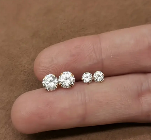 18K Vergoldete Vier-Krallen Ohrstecker mit gedrehten Zirkonia-Kugeln