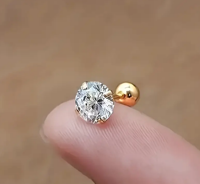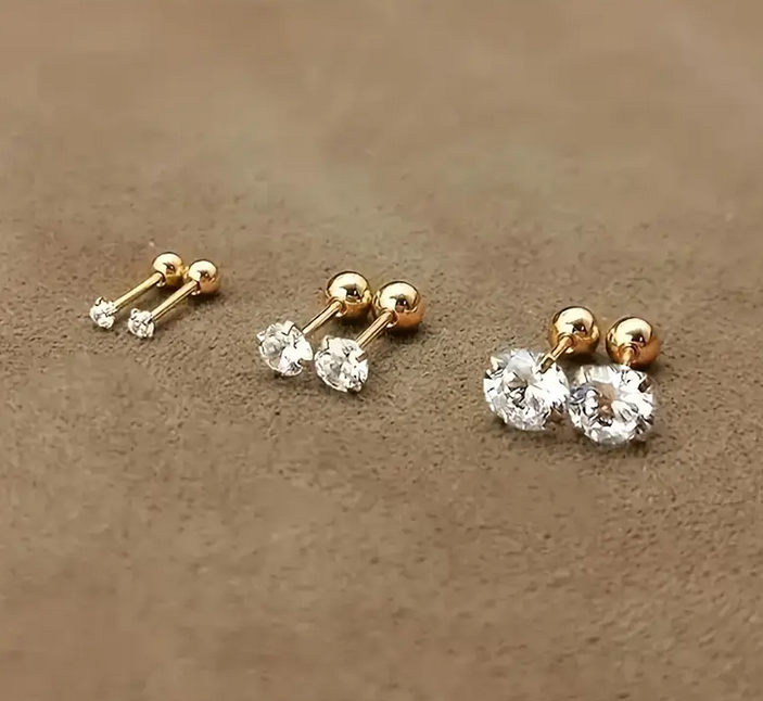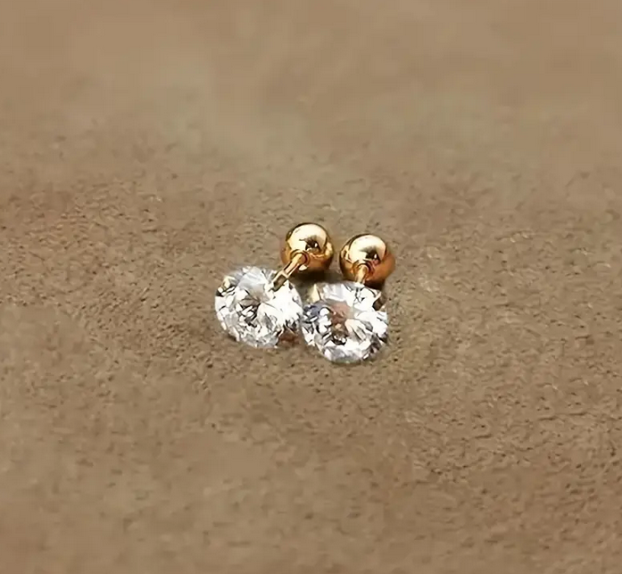 18K Vergoldete Vier-Krallen Ohrstecker mit gedrehten Zirkonia-Kugeln