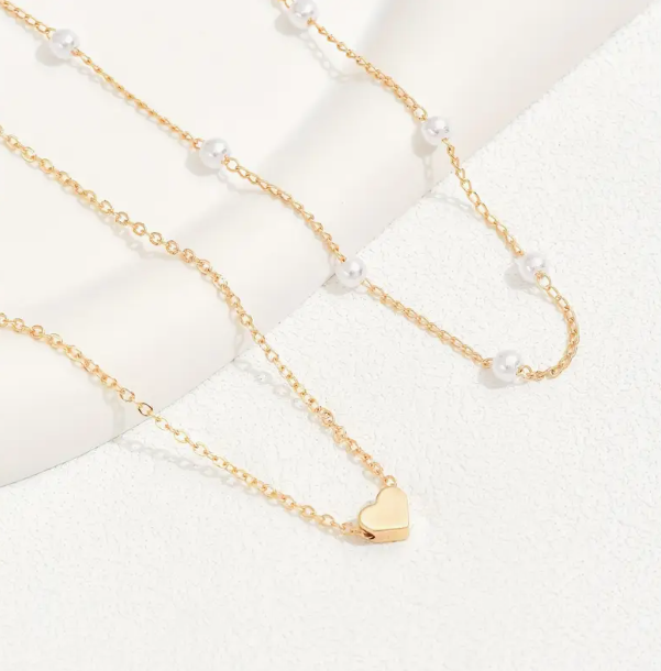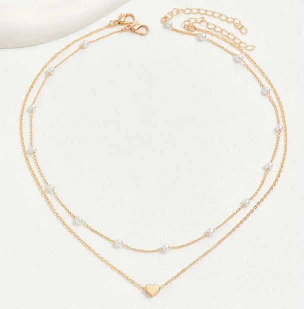 • Modebewusste Halskette mit Herz-Anhänger und eleganten Perlen