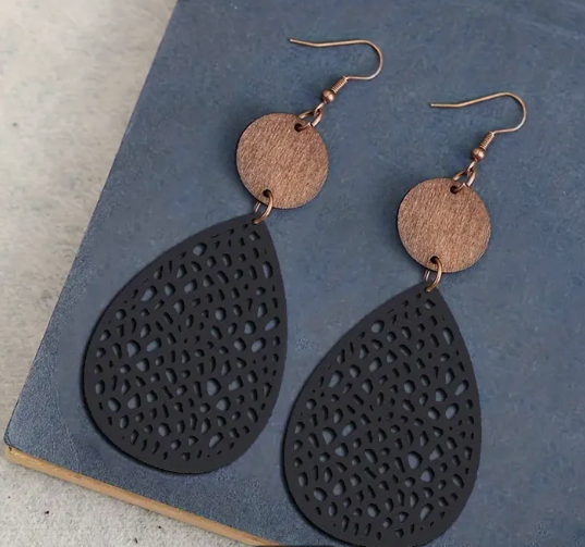 • Elegantes Design: Hohlförmige Blatt-Ohrringe aus PU-Leder mit einem einzigartigen Vintage-Look.